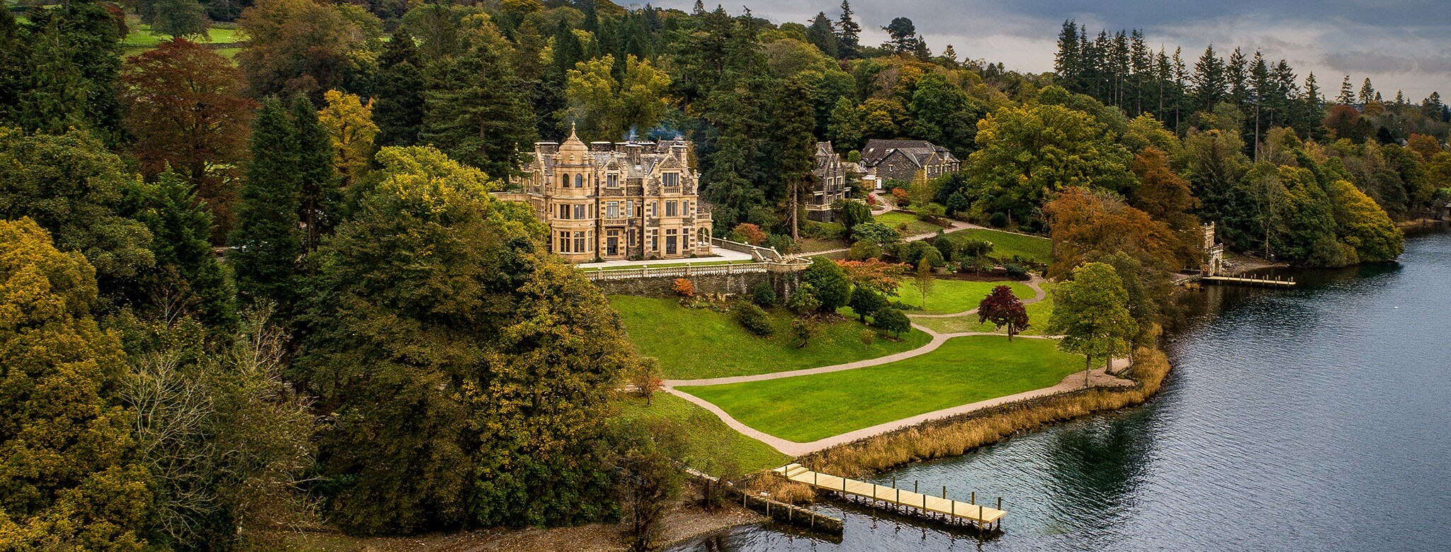 Every room features king-size beds and premium Bath House toiletries, and many have views straight across Windermere. Afternoon tea is served daily, and the dining room offers lunch and dinner using seasonal Cumbrian produce.